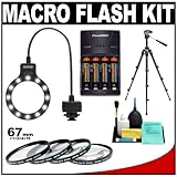 Sunpak DSLR67 LED Macro Ring Light + Batteries & Charger + 67mm Macro Photography Lens Filter Set for Canon, Nikon, Olympus & Pentax Digital SLR Cameras